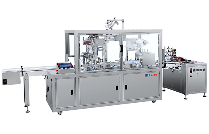 HLT-HY81N(單臺8頭)與8頭灌裝機+內襯裝盒機連線,有三個輸送系統,一個加速機構組成