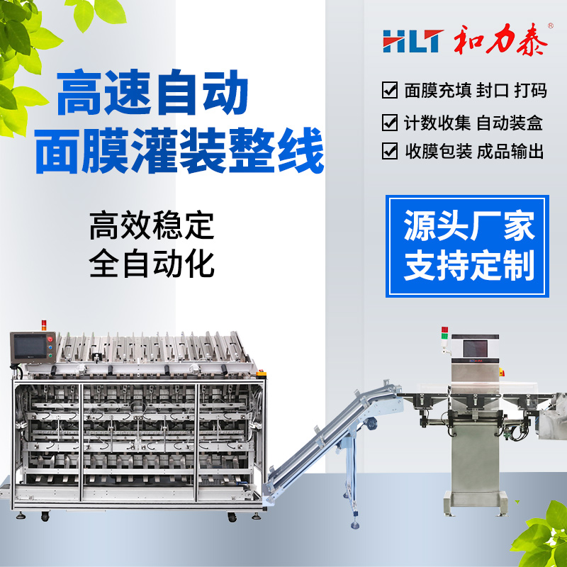 和力泰面膜灌裝機又分四頭面膜灌裝機、六頭面膜灌裝機、八頭面膜灌裝機、十頭面膜灌裝機、雙腔面膜灌裝機、三部曲面膜灌裝機、異型面膜袋灌裝機,高配定制面膜灌裝設備;