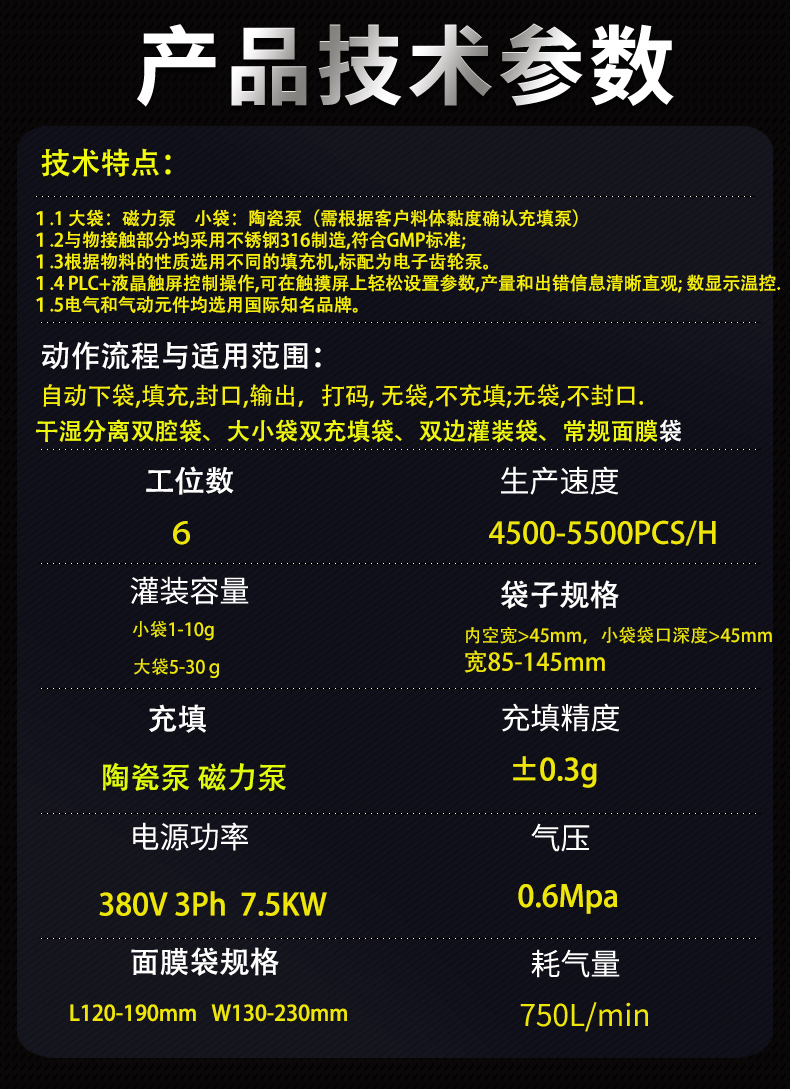 和力泰立式雙腔異型袋面膜灌裝壓碼打碼封口一體機