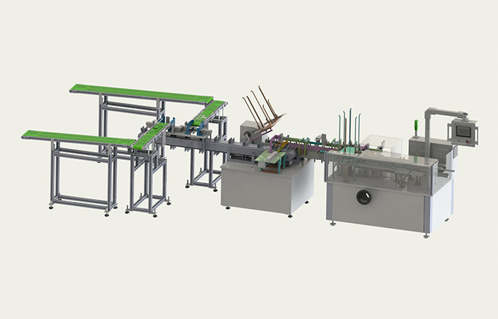 裝盒機可與鋁塑包裝機,枕式包裝機,灌裝機,制皂機,噴碼機(或監管碼系統),貼標機,在線稱重儀,三維包裝機,熱收縮包裝機,束帶捆包機,其它生產線等實現對接聯動生產。