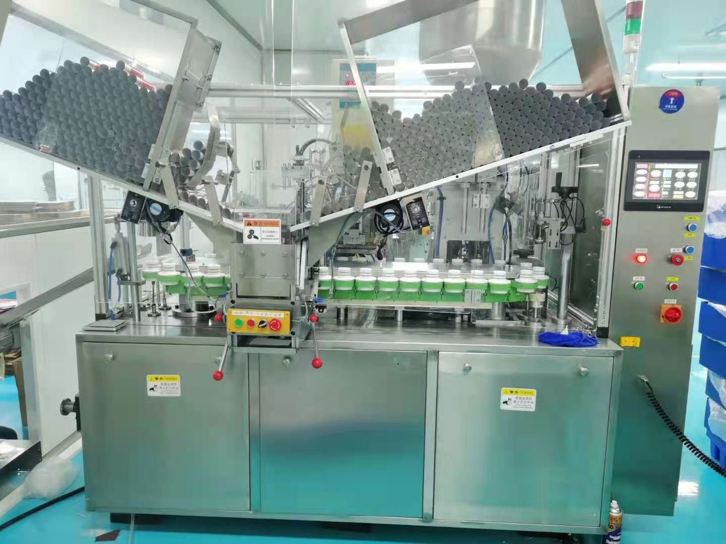 灌裝部分可升降,水冷管道可一按排水,灌裝容量調(diào)節(jié)簡(jiǎn)易優(yōu)化,機(jī)臺(tái)配件全面優(yōu)化:自帶光眼標(biāo)配三色,亞力克防塵防靜電安全房可視罩內(nèi),易觀察、易操作、易保養(yǎng):40個(gè)軟管杯:一套平角切刀(不含軟管圓角切刀)等