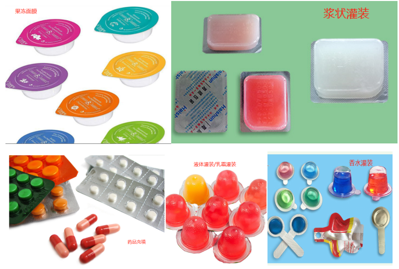 用于液體、膠囊、糖果、片劑、奶片、大蜜丸濃稠物膏體、及異形物料的鋁塑、紙塑、鋁復合密封包裝。
